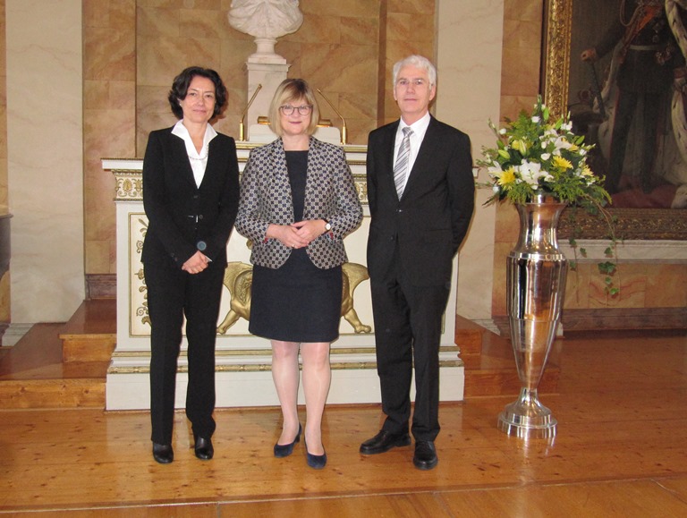 Justizministerin Niewisch-Lennartz (Mitte) mit der neuen Präsidentin des Landgerichts Göttingen, Gabriele Immen und ihrem in den Ruhestand verabschiedeten Amtsvorgänger Hans-Georg Haase