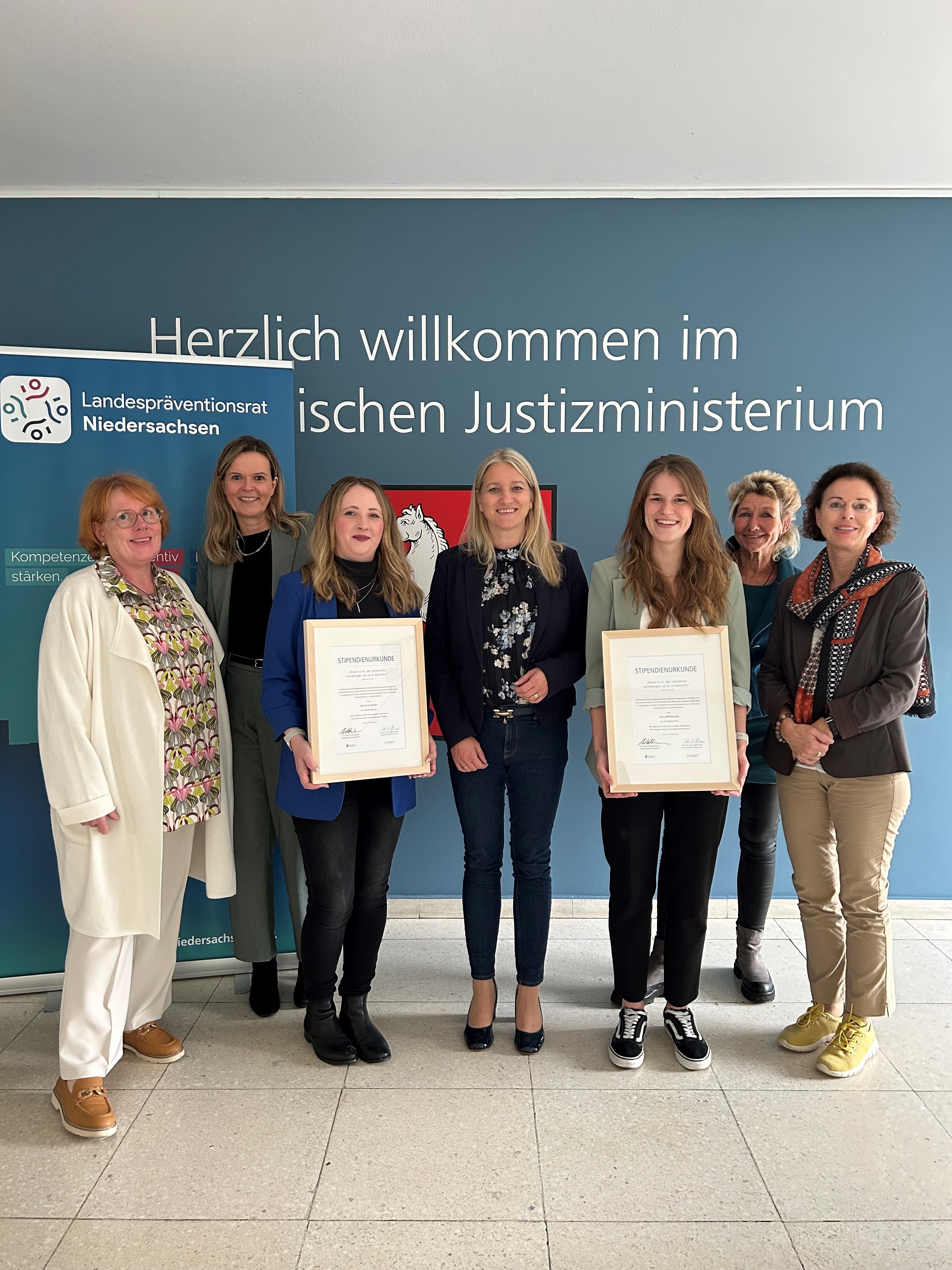 Bei der Übergabe der Stipendien zeigte sich Justizministerin Dr. Wahlmann begeistert von den beiden „High Potentials“ der niedersächsischen Kriminalprävention: „Ich gratuliere Ihnen ganz herzlich zur Auszeichnung mit den beiden Niedersachsenstipendien. Sie haben beide schon in jungem Alter bei Ihrer praktischen Tätigkeit unter Beweis gestellt, dass Sie für die Kriminalprävention brennen und zu den größten Nachwuchstalenten in diesem Bereich gehören. Die effektive Prävention von Straftaten ist ein entscheidender Schlüssel zur Sicherheit in unserer Gesellschaft. Es ist der Landesregierung deshalb ein großes Anliegen, Sie auf Ihrem weiteren Bildungsweg bestmöglich zu unterstützen. Ich drücke Ihnen die Daumen für ein spannendes und lehrreiches Studium und für eine weiterhin so erfolgreiche Berufslaufbahn.“