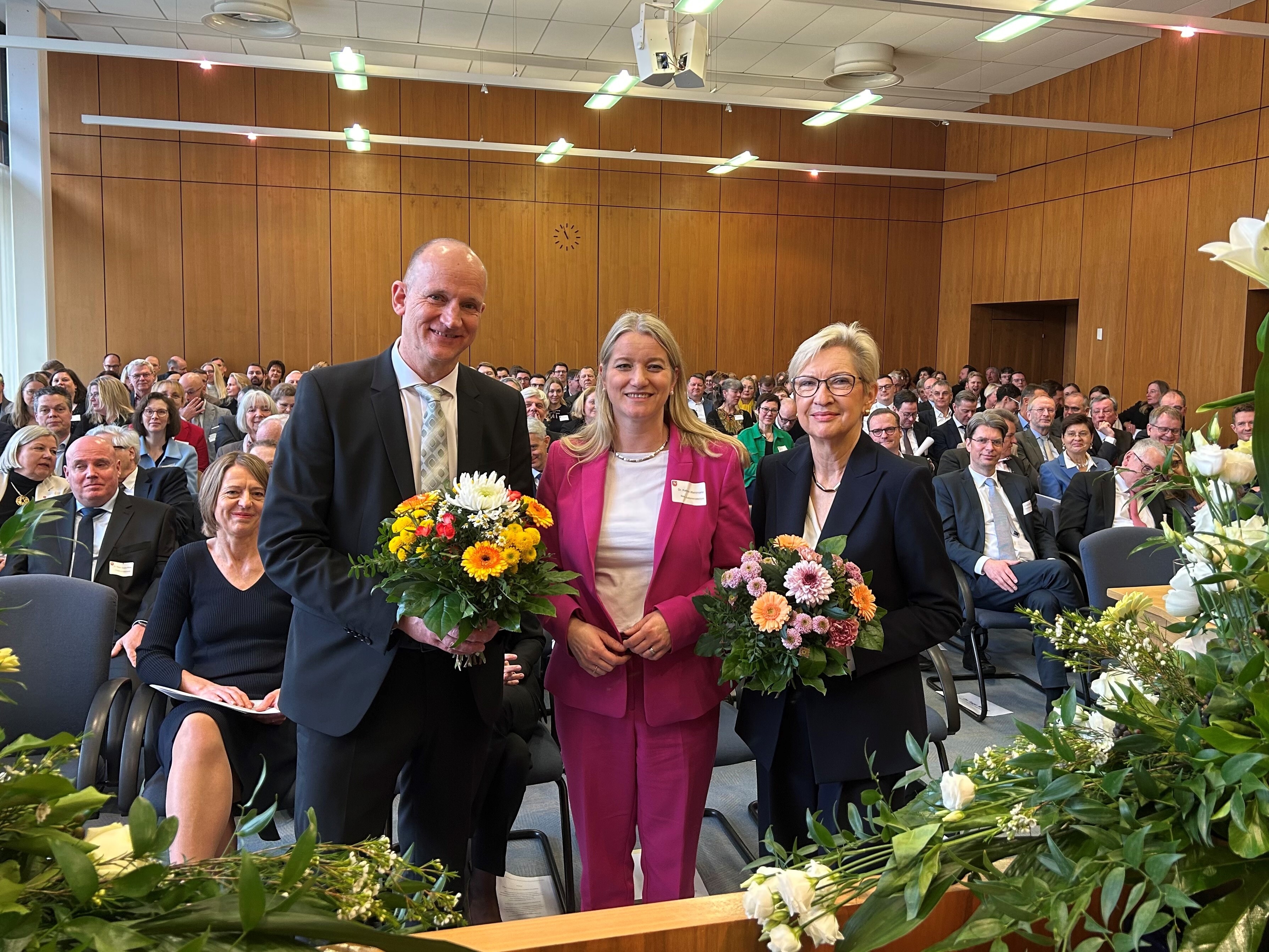 Justizministerin Dr. Kathrin Wahlmann führt Jan-Michael Seidel in das Amt des Präsidenten des Landgerichts Hildesheim ein und verabschiedet dessen Vorgängerin Dr. Britta Knüllig-Dingeldey in den Ruhestand
