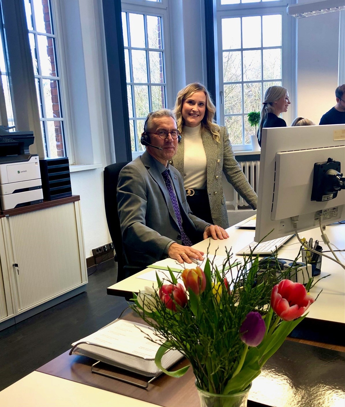 Nun durfte sich der am Amtsgericht Osterholz-Scharmbeck angesiedelte Info-Service über hochrangige Unterstützung freuen. Der Staatssekretär im Niedersächsischen Justizministerium Dr. Thomas Smollich kam nicht nur zum Besuch vor Ort nach Osterholz-Scharmbeck - er übernahm auch selbst für eine Stunde das Info-Telefon und stellte sich den Fragen der Bürgerinnen und Bürger.