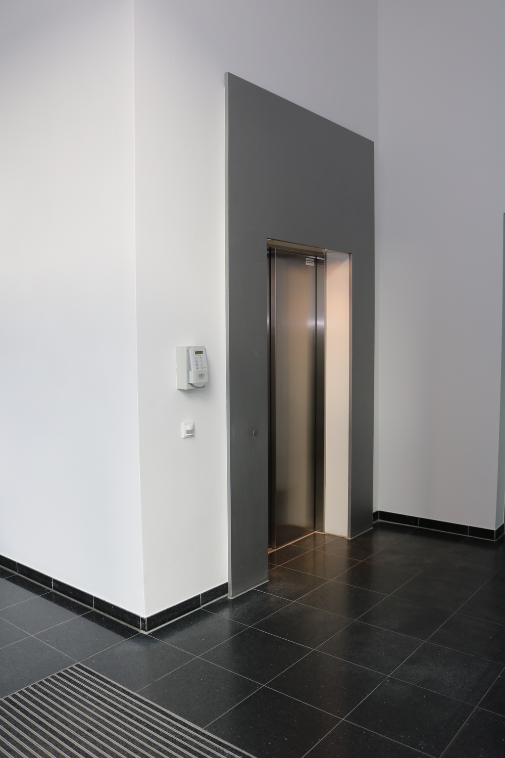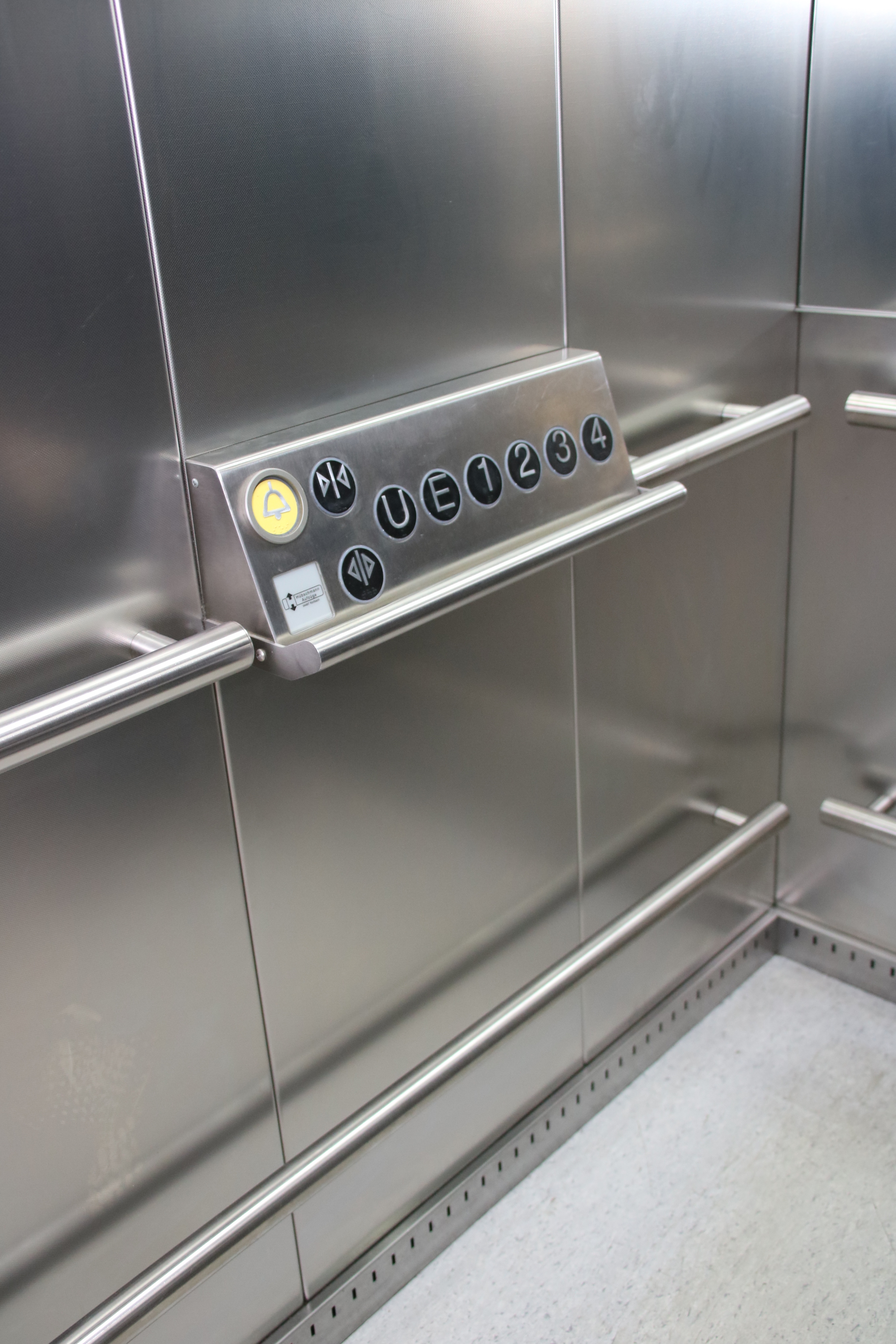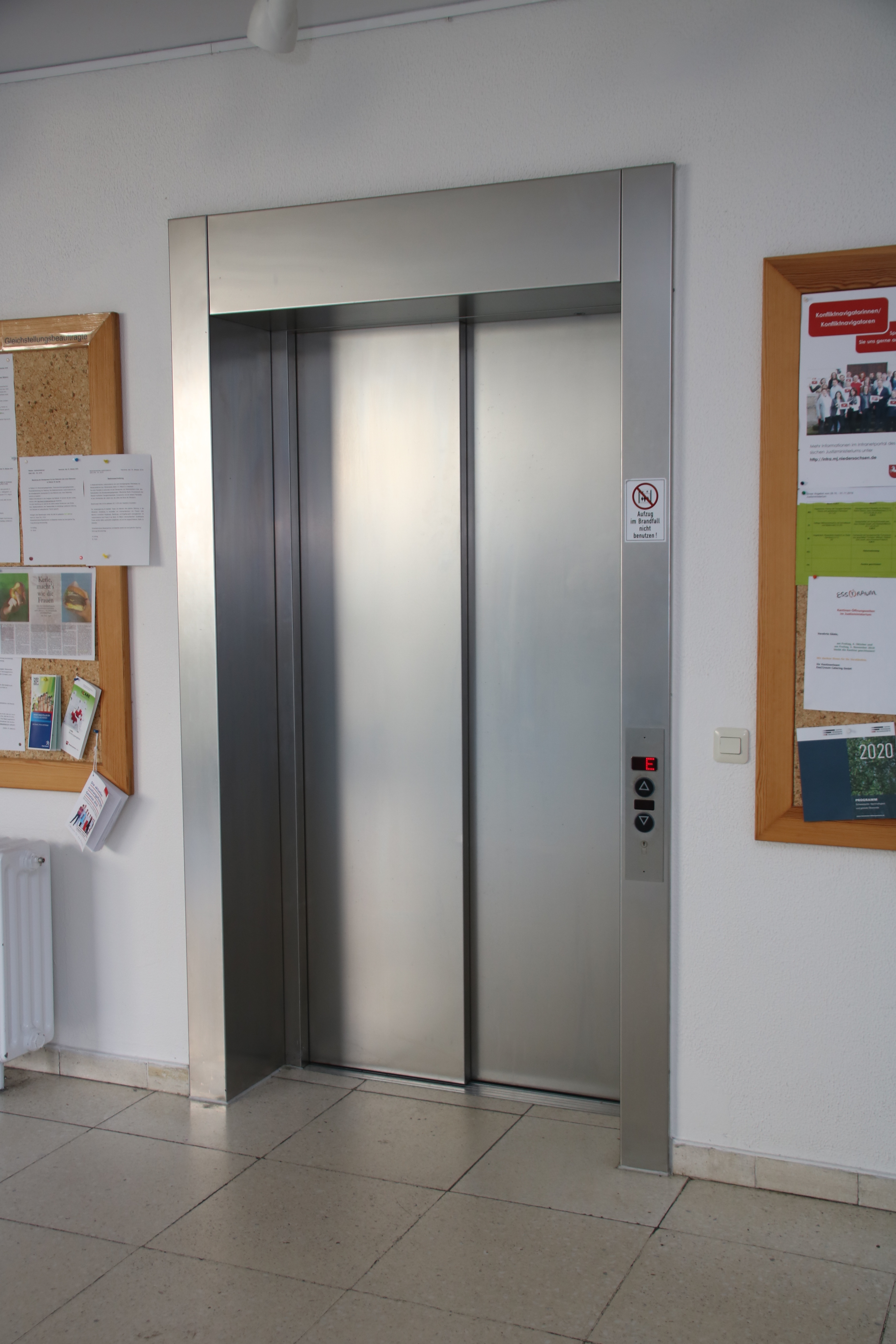 Im Erdgeschoss des Gebäudes befindet sich ein Aufzug, mit dem Sie in alle Etagen gelangen. Der Aufzug ist – mit Ausnahme eines akustischen Signals und der Braille-Beschriftung – barrierefrei.