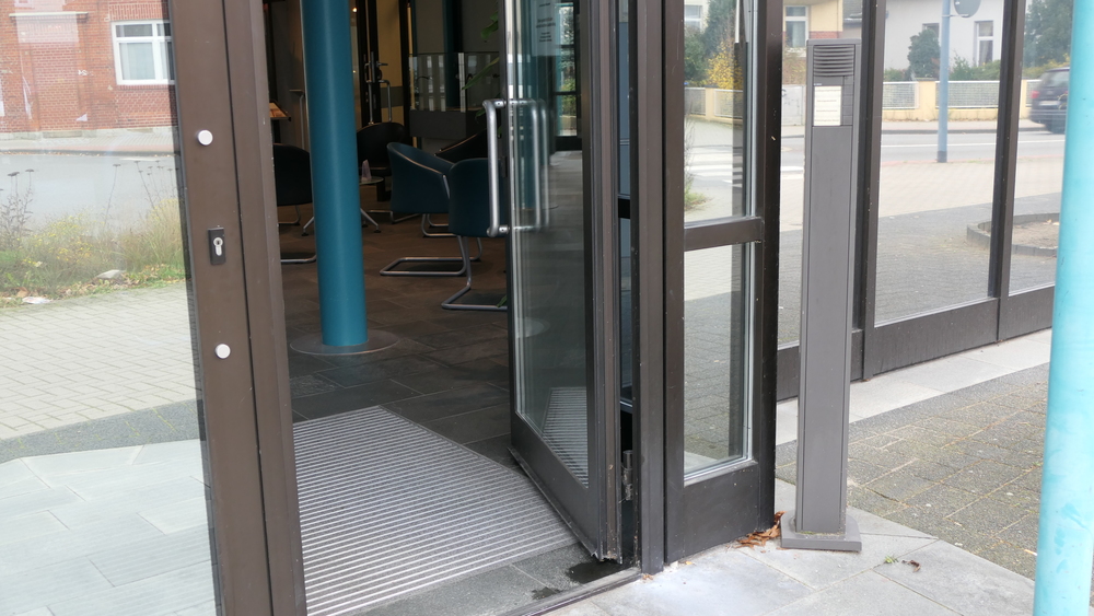 Der Eingang ist ebenerdig und für Rollstuhlfahrer barrierefrei erreichbar. Der Außenbereich verfügt leider nicht über eine eigene Beleuchtung. Ein taktiler Leitstreifen, der es blinden Menschen erleichtert, sich mit dem Langstock zu orientieren, ist leider nicht vorhanden.